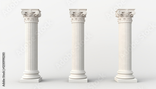 © HecoPhoto, Obraz premium Three Ionic Columns White Marble Architectural Detail 3D Render