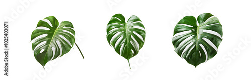 © joeycheung, Obraz premium Three isolated monstera leaves on a white background.