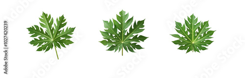 Naklejka premium Three isolated papaya leaves, with a light green background, arranged...
