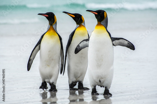 © Ross, Fototapeta premium Three King Penguins on the beach