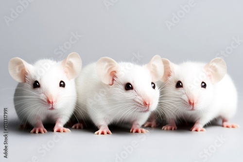 © Gatherina, Naklejka premium Three lab rats posing on a grey background