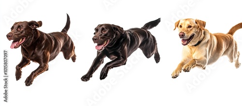 Obraz premium Three Labrador Retrievers in Motion