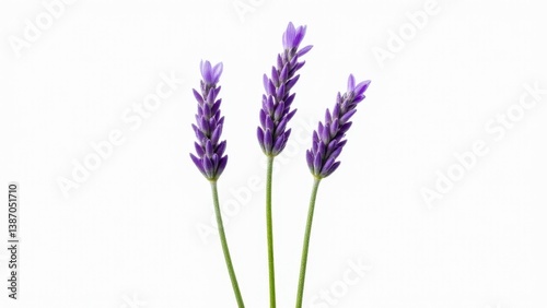 © Gayan, Naklejka premium Three Lavender Flower Stalks On White