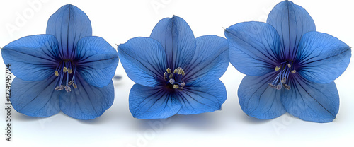 © AgungRikhi, Obraz premium Three Light Blue Flowers on White Background
