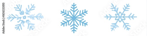 © Aljurrum, Fototapeta premium Three light-blue, simple snowflake designs on a white background