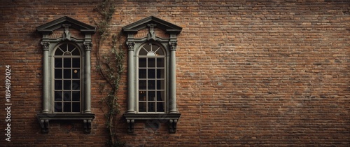 © TheWaterMeloonProjec, Fototapeta premium Three-light mullioned windows on a brick wall with two sections