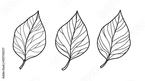 © kucret, Obraz premium Three line art leaves; nature, design, illustration, white background; for prints