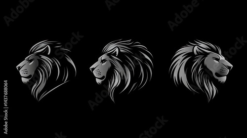 © joo, Obraz premium Three lion head profiles, dark background, logo design