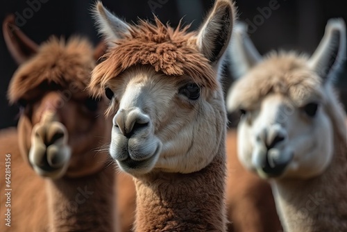 © Golib Tolibov, Obraz premium three lloves that are looking at the camera with their heads slightly to the right, and one is staring towards the camera