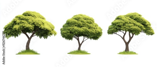 © Fernando, Fototapeta premium Three Lush Green Trees Isolated on White Background, Perfect for Nature Designs