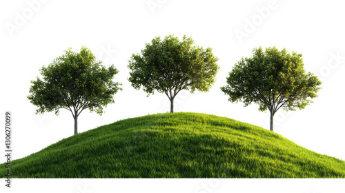 © Muhammad, Fototapeta premium three lush tree on green hill isolated on white background