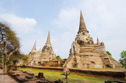 Fototapeta premium Three main stupas aligned in the central shrine of Ayuthaya temple, Thailand