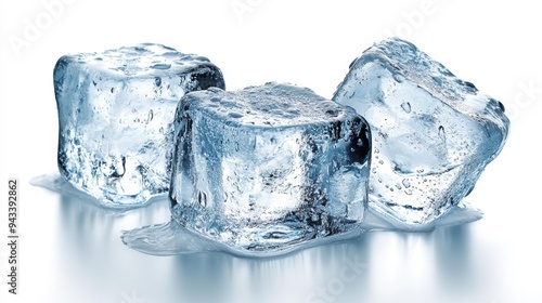 © studio clever, Obraz premium Three Melting Ice Cubes on a White Surface Generative AI