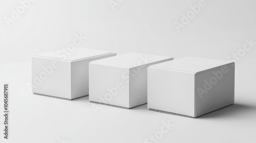 © Lui Shtein, Fototapeta premium Three minimalist white cubes on light background for modern design concepts