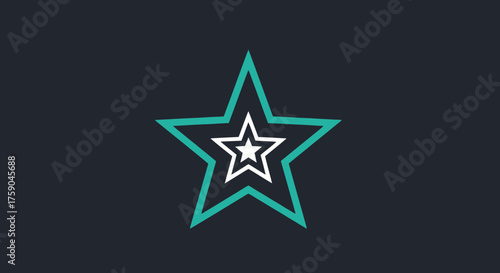 Fototapeta premium Three nested stars, teal and white, on dark gray background