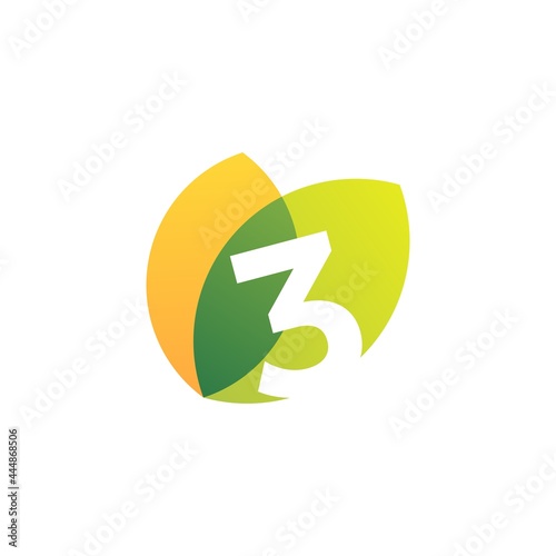 Obraz premium three 3 number leaf overlapping color logo vector icon illustration