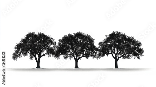 Fototapeta premium Three Oak Trees Silhouette, White Background, Nature, Design