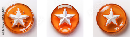 © YiuCheung, Obraz premium Three orange, oval-shaped resin cabochons each feature a central, white, five-pointed star. One star is surrounded by smaller stars.