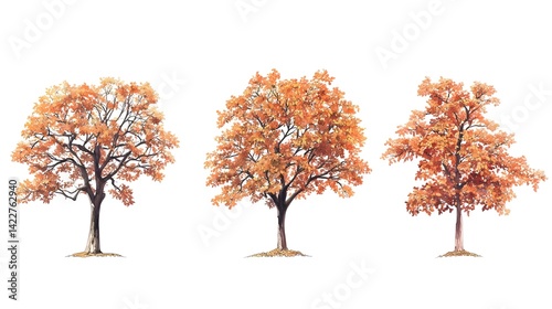 Naklejka premium Three Orange Trees Illustrations with Detailed Leaves and Textures