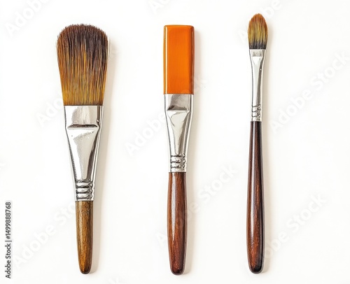 © Adri, Naklejka premium Three paintbrushes, flat lay