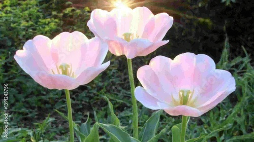 © Ika, Fototapeta premium Three pale pink tulips in sunlight