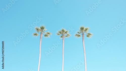 Fototapeta premium Three palm trees against a vibrant blue sky