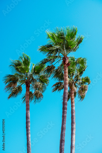 Fototapeta premium three palm trees against clear blue sky on Mallorca, Spain
