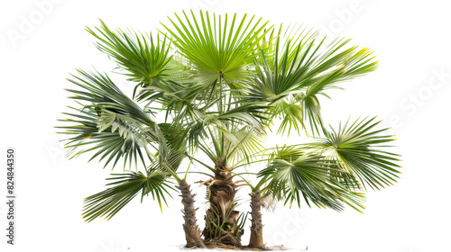 Fototapeta premium Three palm trees are prominently displayed against a plain white backdrop