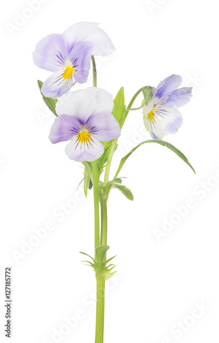 © Alexander Potapov, Fototapeta premium three pansy light violet blooms on stem