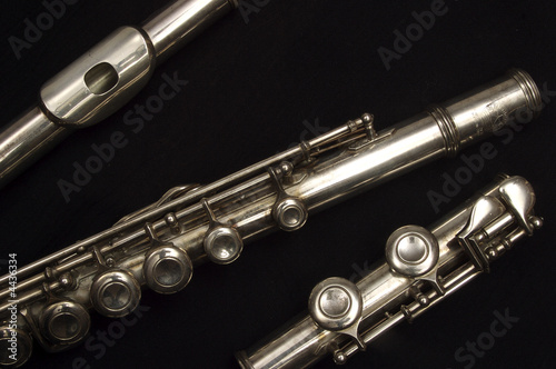 © Freshwater Seas, Naklejka premium Three parts of a flute, rectangular layout back and front keys