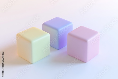 © malayeka, Obraz premium Three pastel cubes on white background. (1)