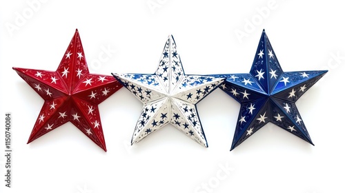 Obraz premium Three patriotic stars in red, white, and blue, isolated on white background.