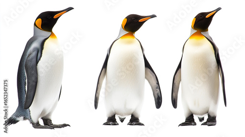 © Vaundy, Fototapeta premium Three penguins displayed against white background