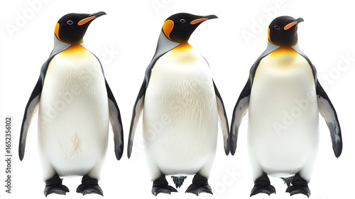 © Vaundy, Fototapeta premium Three penguins displayed against white background
