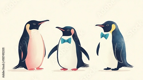 Fototapeta premium Three Penguins in Bow Ties