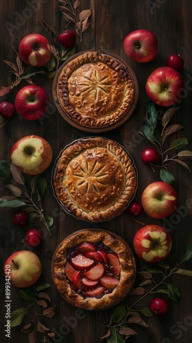 © liliyabatyrova, Fototapeta premium Three pies with apples on a table