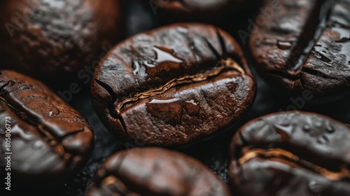 © Mikus, Obraz premium Three piles of coffee beans stacked one atop the other
