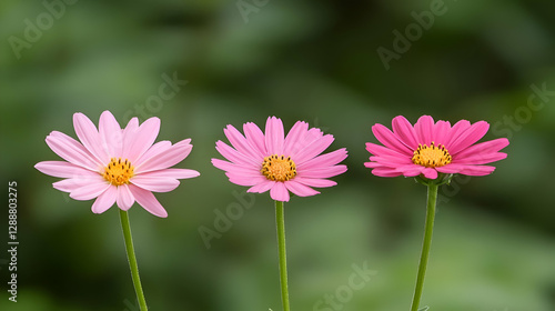 © Munanto, Obraz premium Three Pink Cosmos Flowers Blooming in a Garden