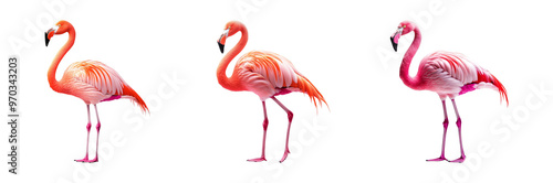© zai, Obraz premium Three Pink Flamingos on Transparent Background in Different Poses