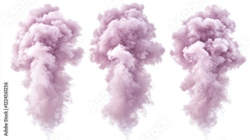 © wannathon, Naklejka premium Three Pink Smoke Explosions Isolated on White