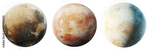 © RTUN, Fototapeta premium Three planets are shown in a row, with the middle one being the largest