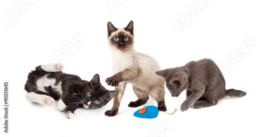 © adogslifephoto, Obraz premium Three Playful Kittens on White