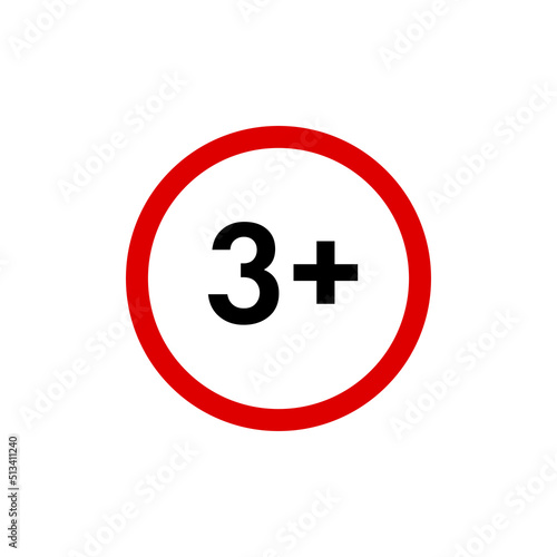 Fototapeta premium Three plus icon, under 3 years old prohibition sign, age restriction symbol...