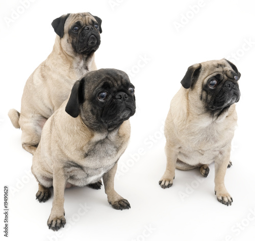 © Jesse Kunerth, Obraz premium Three Pugs Isolated on White