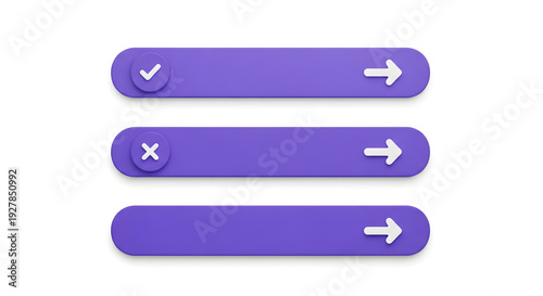© Monstar, Obraz premium Three purple toggle switches with check arrow and cross symbols