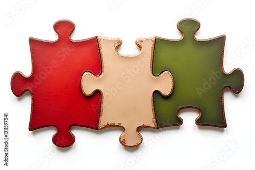 © Srinoun, Obraz premium Three puzzle pieces fitting together in red, beige, and green colors