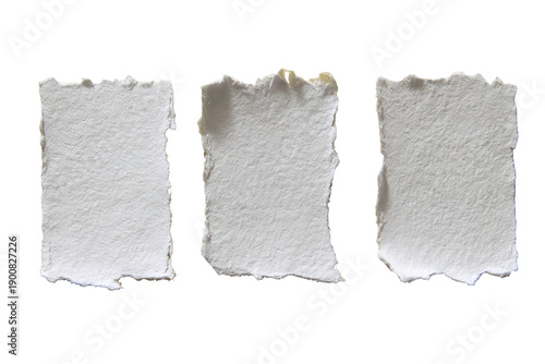 © ANZ studio, Obraz premium Three rectangular, deckled-edge white paper scraps against a stark black background