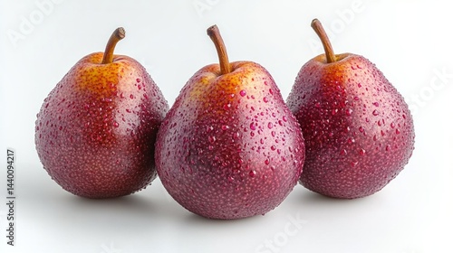 © Korawan, Fototapeta premium Three red apples with a shiny, wet surface
