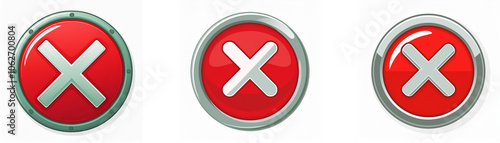 Fototapeta premium Three red circular buttons with white "X" symbols.