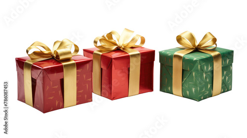 Fototapeta premium Three red gift boxes with gold bows on an transparent background.